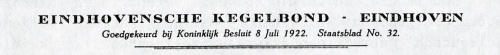 De kegelsport in Eindhoven bleef wat achter bij de rest van de provincie. Dat lijkt ook te gelden voor de eerste decennia van deze eeuw. In 1919 waren er bij de landelijke bond 361 clubs aangesloten, waaronder 13 van de Bredase Bond, 11 van de Tilburgse en 9 van de Bossche. In Eindhoven bestond toen nog geen bond en voor zover bekend was er geen enkele Eindhovense club rechtstreeks lid van de landelijke Bond.