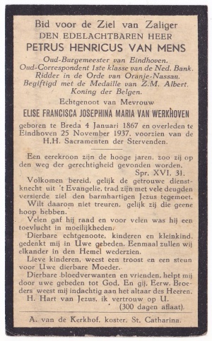 Petrus van Mens is burgemeester van de stad Eindhoven geweest van 1898 tot aan de annexatie op 1 januari 1920.