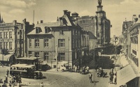 Het waaggebouw op de hoek van de Markt en Marktstraat. Op de achtergrond de glazen hoektoren van het V&D-gebouw